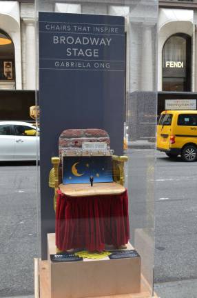 Another student, Gabriela Ong, drew from her love of Broadway to construct a stage out of an old theater chair. Student Matt Iacovelli chose to portray his connection to pop culture by constructing an old-fashioned newsstand chair, complete with actual candy and magazines.