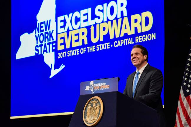 Cuomo’s budget contains, among other things, $2 billion for investment in clean-water infrastructure, a new version of the currently suspended 421a property tax and $10 billion to overhaul Kennedy International Airport. The governor also proposed to make tuition at state colleges free for families with less than $125,000 in annual income. “[College] shouldn’t just be for the people who can afford it,” Cuomo said in Albany. “Average debt now for a child coming out of college is $30,000.” A $1 billion increase in state-wide education funding is also included.