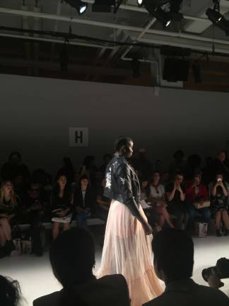 “The collection is about art and expression — and the fusion of those two things,” designers Liz Munoz and Kim Sippi wrote in an accompanying pamphlet to the show. “Apparel should reflect the many sides of a woman — she’s never just one thing.”