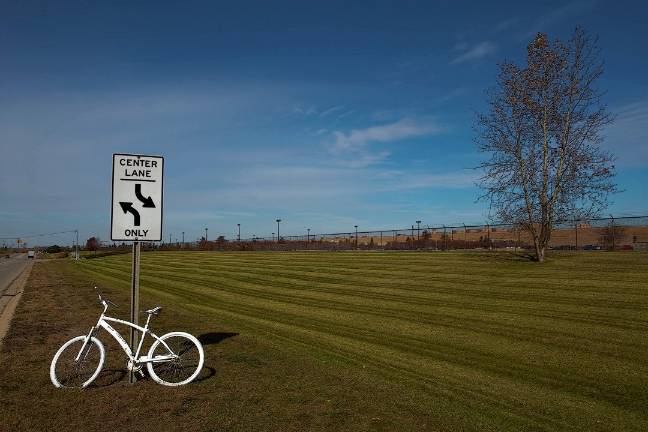 The exhibit showcases images from Barnes’ 2015 book of photographs that she took of ghost bikes, which are memorials to those who died in cycling-related accidents. The memorials feature white-painted bikes placed at or near the accident sites.