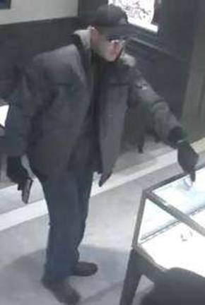 At 11:16 yesterday, the man entered A. Lange & Söhne store, on Madison between 66th and 67th Streets, took out a handgun, announced a robbery and told employees to open display cases, police said. The man then used a hammer to break open a case.