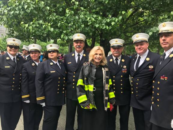 Congresswoman Carolyn Maloney has added a new statement piece to her wardrobe, courtesy of the New York City Fire Department.