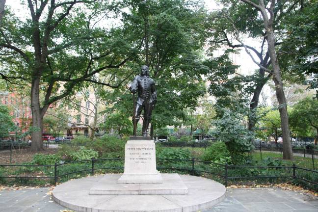 • The Peter Stuyvesant statue in Stuyvesant Square. New Amsterdam’s anti-Semitic, anti-Catholic Dutch governor, who served from 1647 to 1664, branded Jews a “deceitful race, repugnant and blasphemous,” and initially banned them from settling in Manhattan.
