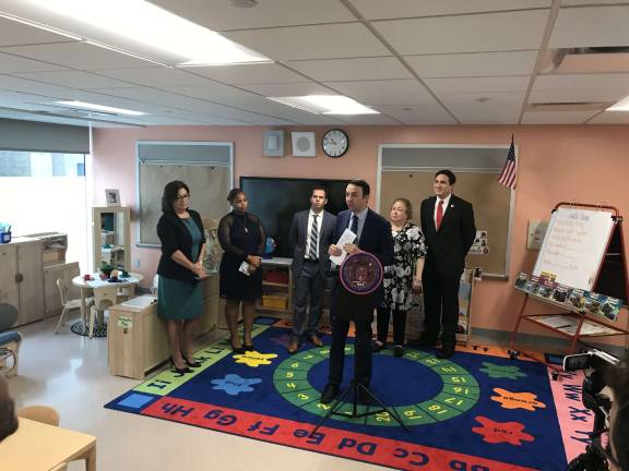 From left: School Construction Authority President Lorraine Grillo, DOE Director of Early Childhood for District 2 Aneesha Jacko, Assembly Member Dan Quart, Council Member Keith Powers, State Senator Liz Krueger, Council Member Ben Kallos. Photo courtesy of Council Members Ben Kallos and Keith Powers