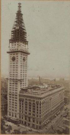 The interactive map of Manhattan holds nearly 40,000 archived photos. Click on any of the red dots on the map and you’re taken back in time as a yellowed photo pops on screen, a year and description hovering to the side. Scroll to Brooklyn to see photos of the Williamsburg Bridge under construction, or over to 350 Fifth Avenue for half of the Empire State Building. 333 Seventh Avenue, the towering building that now houses Straus News, was once a modest six story apartment building in 1914.