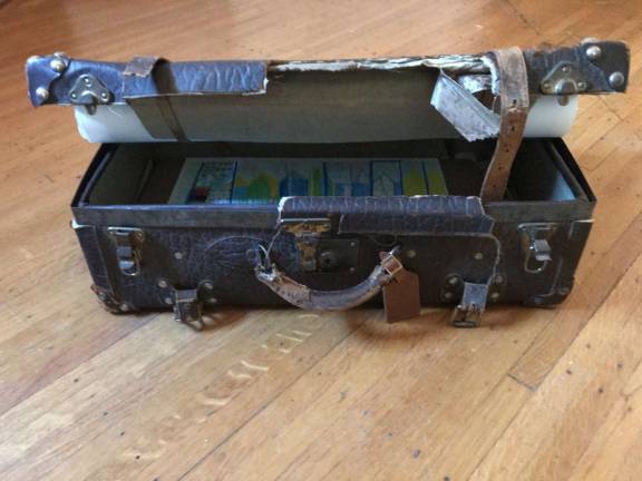 Bernard lined the insides of the suitcase with old newspapers featuring headlines that echo current ones, about war and prejudice, even Russia. “The suitcase is our broken immigration policy. The images highlight why immigrants flee, with U.S. foreign policies acting as a catalyst for war and violence (in their respective countries),” she said.