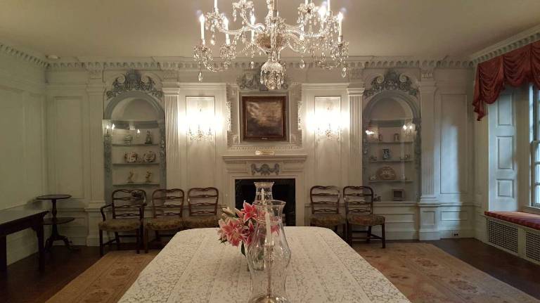 If approved by the city’s Landmarks Preservation Commission, the designation would essentially preclude alterations and new construction without the commission’s approval. But even without landmark status, the Society’s colonial revival structure stands apart from the scaffolds and skyscrapers in Lenox Hill. The building, completed in 1930, was a product of the wave of appreciation for America’s colonial roots that characterized the end of the 19th century. Wanting to “create a popular interest in our Colonial history” the Dames of America commissioned architect Richard Henry Dana Jr. to design a colonial-style house replete with historically significant artifacts.