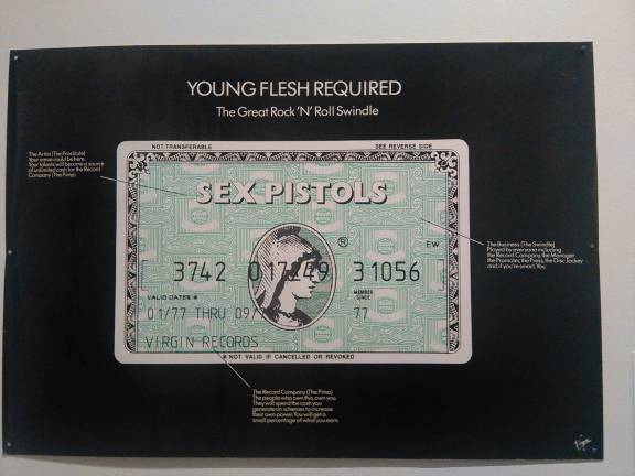 The flavor of the show is driven by the energy and pushback against a formulaic rock industry and a society that had become increasingly complacent. The show is laid out by visual strategies and design techniques (cut and paste, or typography) and outsider influences like comics, horror movies and ironic takes on ‘modern’ art. Subversion was the driving force and no subject was sacred: not even the Queen ... or the American Express card.