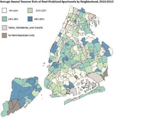 “There’s this separate group of apartments that were added into rent stabilization after the law took effect,” said Sarah Stefanski, the author of the IBO report. “These are buildings that generally are getting some sort of property tax benefit, and in exchange for that tax break they have to rent stabilize their apartments.” The algorithm that determines the set rent for newly-stabilized apartments tends to be near market rate, Stefanski explained. So plenty of rent stabilized tenants are paying close to what their non-stabilized neighbors might be paying. “In areas that have a large share of these later apartments we tend to see higher turnover rates,” Stefanski said.