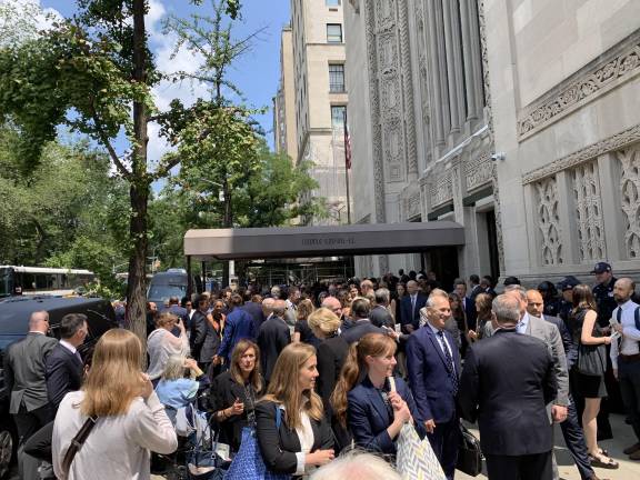 Public service was in Robert Morgenthau’s blood. Temple Emanu-El Senior Rabbi Emeritus Ronald B. Sobel, who officiated the service, began by paying homage to the “Morgenthau trilogy” who devoted their lives to public service: Robert’s grandfather, Henry Sr., who served as Woodrow Wilson’s ambassador to the Ottoman Empire during World War I; Robert’s father, Henry Jr., who was FDR’s treasury secretary; and Robert, who enlisted in the Navy during World War II, served as federal prosecutor for the Southern District during the Kennedy and Johnson administrations, and spent 34 years as District Attorney for New York County.