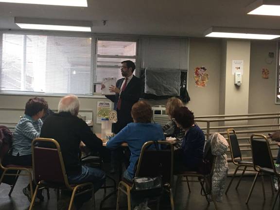 Squadron visited several senior centers in his district on Feb. 23 to gather signatures for a petition against the funding cuts. “What that means is as many as 65 senior centers could be threatened and closed, and more than that could have their services reduced,” Squadron said. “The cuts from this program make no sense at all. Too often the people in Albany and the lobbyists are the loudest voices.”