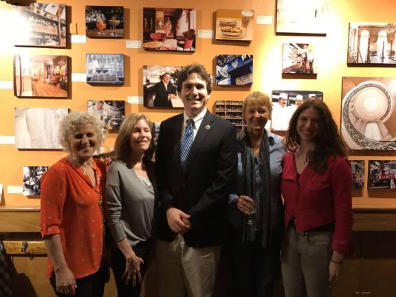 Manhattan Sideways displayed a small selection of their photographs of Manhattan businesses on side streets at an opening party at Ryan’s Daughter on East 85th street Saturday evening. The photographs on display will be rotated throughout the year. Pictured left to right are Straus News Publisher Jeanne Straus, Manhattan Sideways creator Betsy Polivy, City Council Member Ben Kallos, former Manhattan Chamber of Commerce head Nancy Ploeger and Sara Romanoski of Townsquared, sponsors of the event.