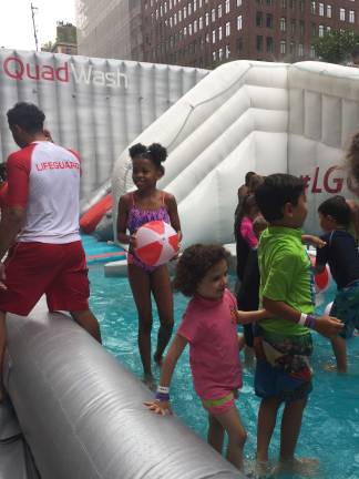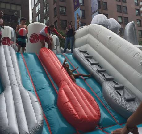 If you do check out the newest activity, you may want to bring your bathing suit because the rest stop features an inflatable waterpark. The enormous inflatable, near the route’s northernmost point, looks like the inside of a dishwasher, complete with dishes and cutlery. The waterpark rest stop is located on Park Avenue, bound by 71st and 70th streets.