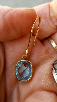 “It’s 18-carat gold,” said Robin Sternberg, a 20-year NYPD veteran who retired in 2005. “Most likely it’s a blue topaz stone, but it could possibly be an aquamarine beryl.”