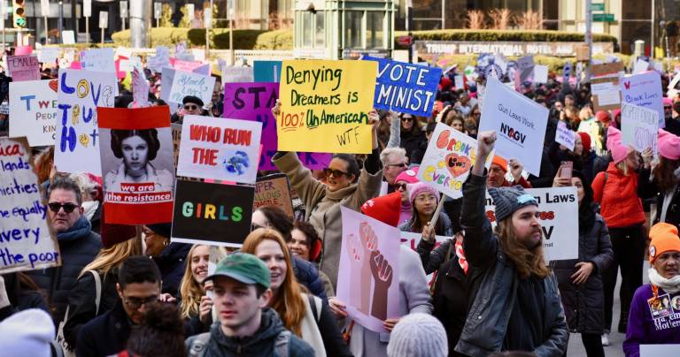 It’s estimated that this year’s Women’s March drew more than 200,000 protesters in New York City — about half the number of people in 2017, according to The New York Times. Protesters marched down Central Park West and toward Trump Tower, where they chanted “Unstable! Unfit! Donald Trump is full of shit!” reported the New Yorker. The subways were full of people on the way to and from the march on Saturday; I struck up a conversation with a woman holding a “threaten my existence and you’ll meet my resistance” sign. Last year, she said, she didn’t know there was a march. This year she was pushing friends to attend.