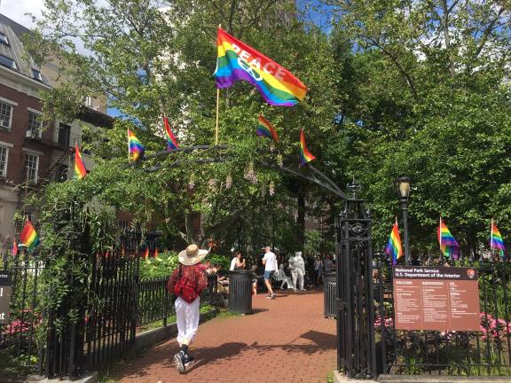 Christopher Park, currently lined with rainbow flags for Pride month, welcomes both those coming to visit the monument and people simply looking for a relaxing place to sit and enjoy the city. “I just kind of like the vibe around here,” Julianna Eddy, a photographer visiting the city from Connecticut, said. “I feel like it’s really safe and just a good place to kind of just meet people.”