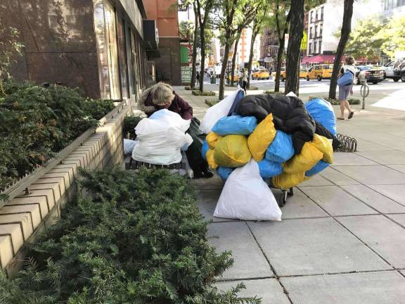 The sharp surge in the homeless presence locally has been disturbing to residents, Larsson says. She notes a small square at 75th Street on the west side of First Avenue near the Saratoga apartment building as one problem spot.