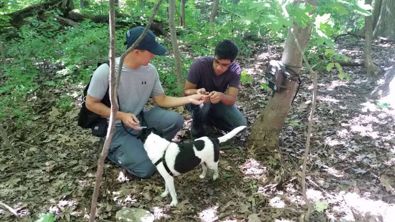 About a year later, Yau received a call from Mark Weckel, a conservation biologist at the Upper West Side’s American Museum of Natural History and co-founder of Gotham Coyote Project (GCP), a collaborative research effort to better understand the elusive coyote and its role in our urban ecosystem. The two had had the same graduate research advisor while studying jaguars in Belize, and Weckel thought Yau could employ his dog-training expertise to train dogs to detect coyote scat (droppings) in the field.