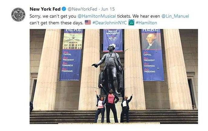 “Sorry, we can’t get you @HamiltonMusical tickets” it said. “We hear even @Lin_Manuel can’t get them these days.”