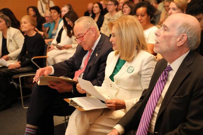 In addition to Majority Leader Schumer, Maloney was joined at the event by Hunter College President Jennifer Raab, Gloria Steinem, Feminist Majority Foundation President Eleanor Smeal, ERA Coalition President Zakiya Thomas, National Organization for Women President Christian F. Nunesm, and Aarush Santoshi, the national policy director of Generation Ratify.