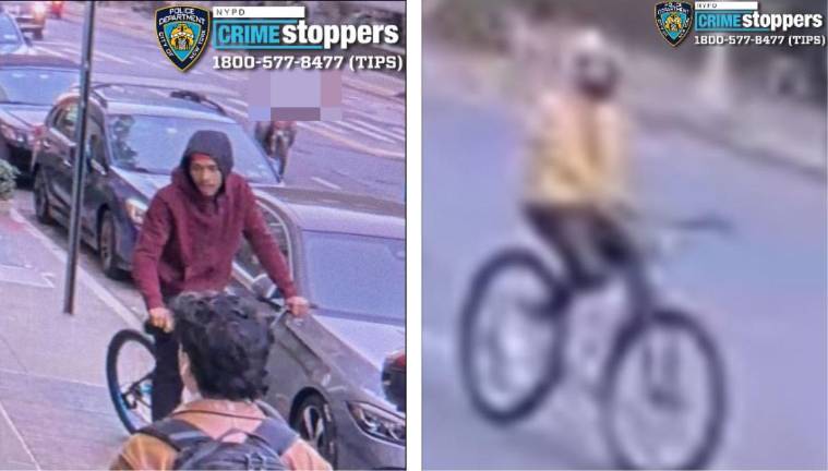 A police report states that on October 16, around 6 p.m., two suspects on bicycles approached a 45-year-old man in the area of W. 82nd St. and Central Park West. An altercation of some kind took place, wherein the 45-year-old man was struck repeatedly over the head with one of the suspect’s bicycles. Following the attack, the two suspects fled on their bicycles. They were last seen heading southbound on Central Park West.