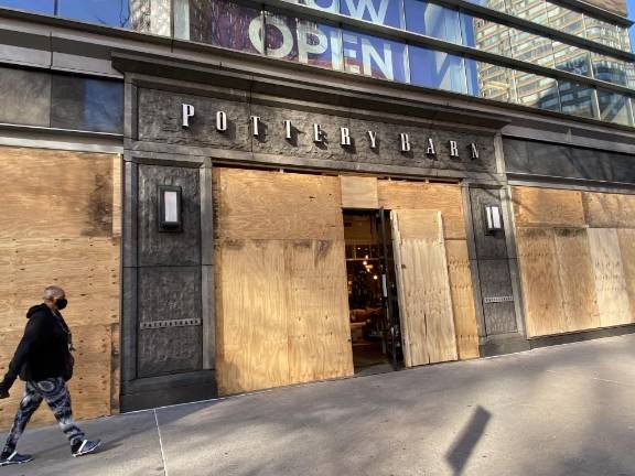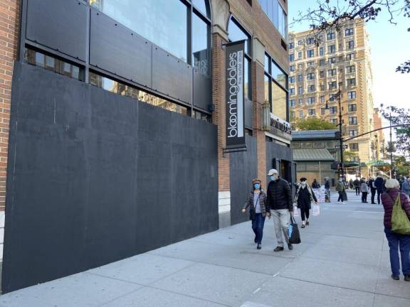 Anticipating protests over the presidential election outcome early last week, Manhattan businesses boarded up storefronts around town. On some stretches of Columbus Avenue, the boards were a sign of stores that closed because of the pandemic. Other locations, from Soho to Times Square to the UES and UWS, were very much open for business, with wood-covered doors ajar. A look at Manhattan under plywood.