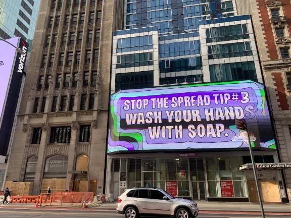 Message and boards in Times Square. Photo: Evando Thompson