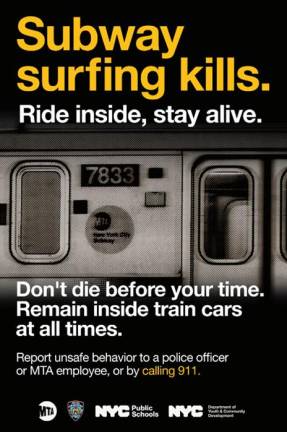 Teenage subway surfing deaths are practically an epidemic these days, and Mayor Eric Adams & Co. are hoping to convince young hearts and minds to “ride inside” trains (rather than on top of them) with a new information campaign.