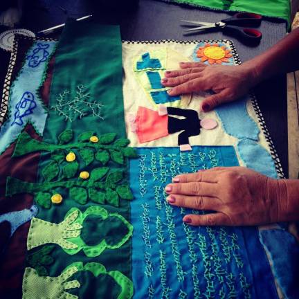 Common Threads: Creation of two groups of refugee women and survivors of gender-based violence in partnership with the Bellevue Program for Survivors of Torture and City College’s Psychological Center, using the healing properties of creating story-cloths in a sewing circle with other survivors. Participants can also show work in exhibitions that raise awareness of gender-based violence.