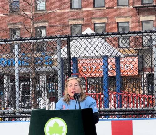 Community Board 8 Chair Valerie Mason got final billing at the podium. She said that her father worked for the Rangers back in the day, and that she was “so happy” to have the renovated rink within the Board’s boundaries.