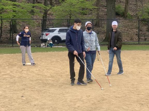 Teenaged students from afterschool programs at Lighthouse Guild, a local nonprofit which provides services to the visually impaired, arrived at the Riverside Park ballfields near 72nd Street excited to learn a new game. The event was the result of a collaboration between the Lighthouse Guild and the NY Rockers, an adult adaptive blind baseball league which practices in Central Park.