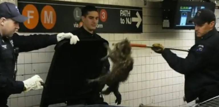 And raccoons are not just an uptown thing. In April 2019, it took nearly a dozen cops to collar a raccoon in the 14th Street/Sixth Avenue subway station.
