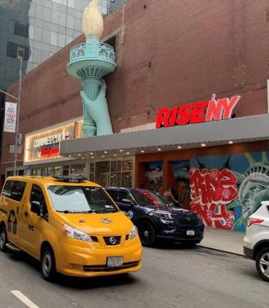 After the ride, a farewell; you can look at the Times Square area under a replica of the Statue of Liberty’s torch.