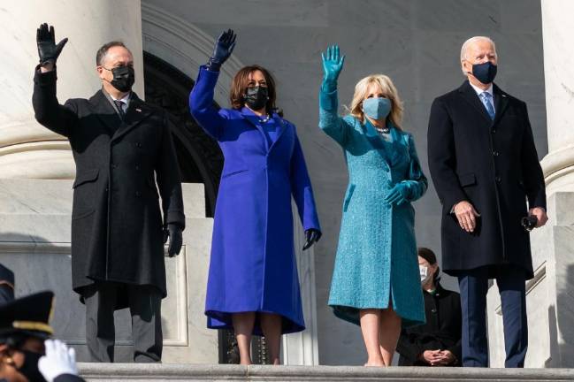 When we were designing the outfit, we knew that people would be reading into everything. And I think the color blue is not only beautiful and calming, but it just signifies trust, stability and confidence. And I think that that’s a nice message to get across on the Inauguration Day.