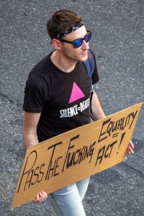 A marcher carries a pro-Equality Act sign. Photo: Trish Rooney