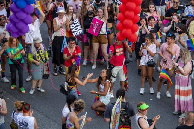 Spectators cheer on a proposal at Pride 2021. Photo: Trish Rooney
