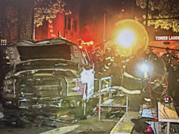 “When we got dispatched, it came in as multiple people hit by an auto, with children involved,” said Captain Bryan M. Scimeme, who led the rescue. “We got there and you could see this truck just barreled through a 30-foot park fence on top of where a family was celebrating. Shoes, scooters, and kids’ clothes everywhere—it was just a mess.”