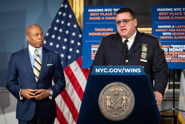 Mayor Eric Adams was joined by the Chief of the NYPD’s Transit department, Joseph Gulotta, at a press conference on Jan. 21. “Thanks to our partnership with the governor, there will be two uniformed officers assigned to each train between 9 p.m. and 5 a.m.,” Adams said. “We’re going to do a phased approach to rollout until we get to the roll of 300,” he said, acknowledging that the full contingent is not yet being deployed underground.