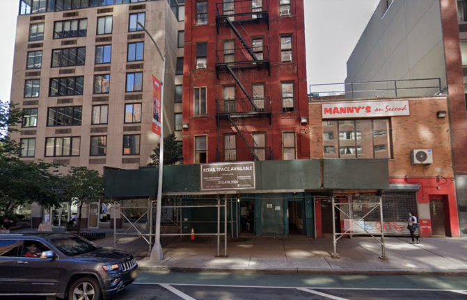 These include sidewalk sheds erected in 2010 at 1772 Second Avenue, 116 east 17th street and 605 east Ninth Street, an abandoned school near Avenue B. The East Village site was once the home of P.S. 64, but it has not housed a school since it was closed in the late 1970s. In recent years it housed the Charas/El Bohio Community Center, but they were evicted by Gregg Singer who bought it for $3.15 million at auction in 1998. More recently Madison Realty Capital has foreclosed on the property but lawsuits and protests by activists have stalled its sale. As the real estate battles rage, a sidewalk shed continues to surround the French Renaissance style building that was declared a Landmark back in 2006.