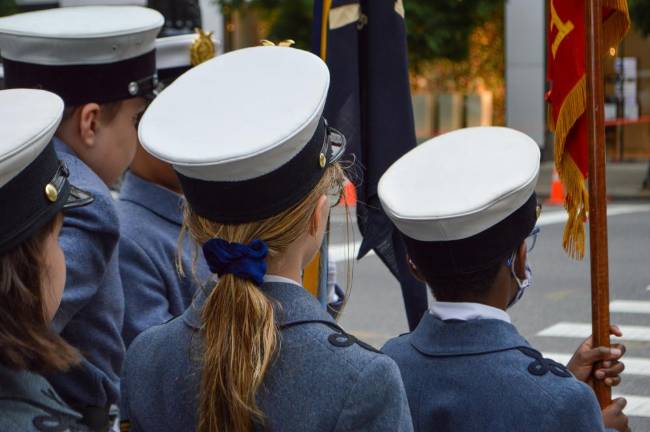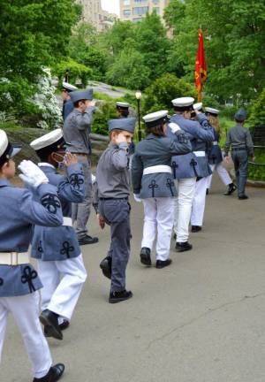 After getting dressed and ready, the Greys cadets filed out a side exit and headed to Central Park. They’d hold their drill practice outside, since the building didn’t have sufficient space available. “It feels great, finally being back in our old space,” said Nico Cox Lewis, a ten-year-old cadet who started with the Greys five years ago. “This is our home.”