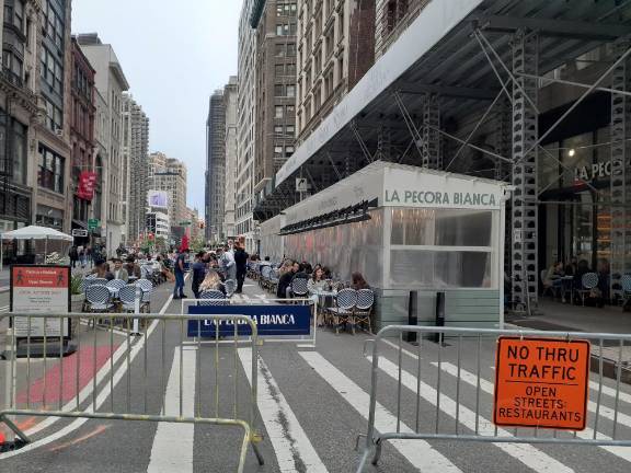 As was the original plan of the city – from Chelsea to Downtown, the Village to the Upper West Side and throughout the five boroughs – restaurants, more than other businesses, appear to be benefiting the most financially from the outpouring of people freed to linger for hours on long stretches of car-free roadways. Most commercial strips are managed by community organizations such as the Flatiron 23rd Street Partnership and the Downtown Alliance BIDs which provide a financial cushion and jump-start to quickly staff up for the program.
