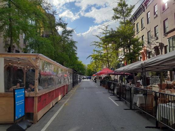 Long before the City Council passed the recent bill making Open Streets a permanent fixture in New York City’s future, restaurant owners were busy building and rebuilding outdoor structures as they gear up for another season of car-free streets and neighborhood bonding. Community organizers meanwhile were meeting and planning how to sustain volunteer efforts that bolster the majority of the programs, while simultaneously fretting about how to fund the various forms of open streets initiatives for “years to come.”