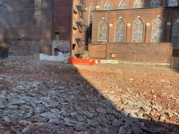While the unlit street was the No. 1 bone of contention, community activists like Wallerstein and Camp remain troubled by the brick-and-concrete dust they fear could blow onto the sidewalk and scatter from the site. Some have also called for higher fencing, enhanced vermin controls and more aggressive cleanliness efforts.