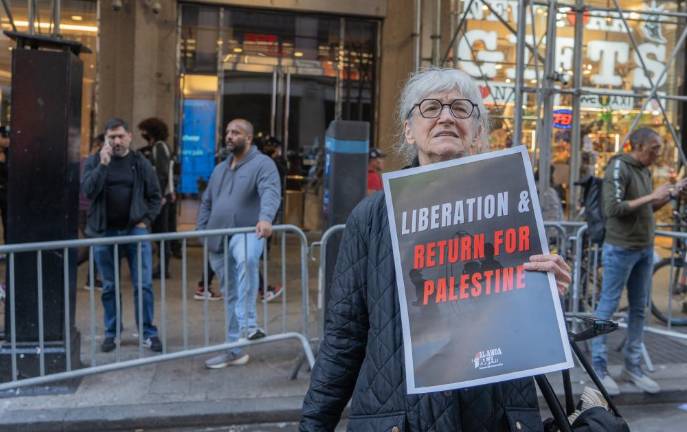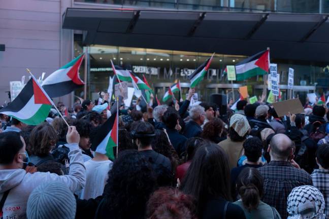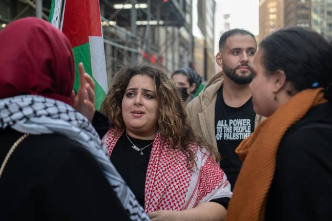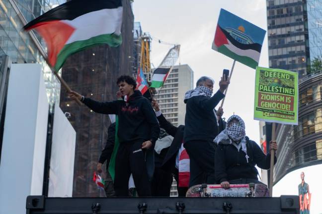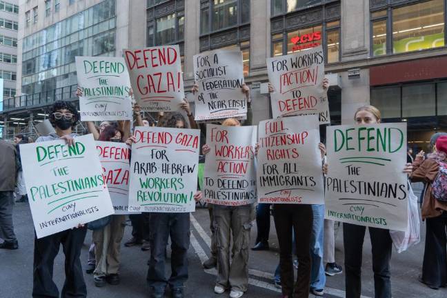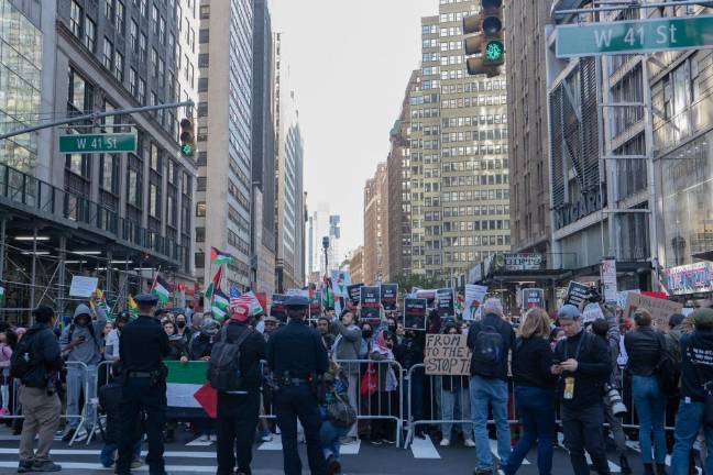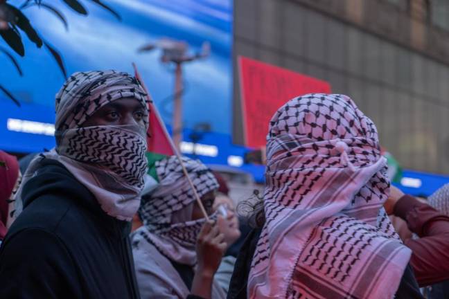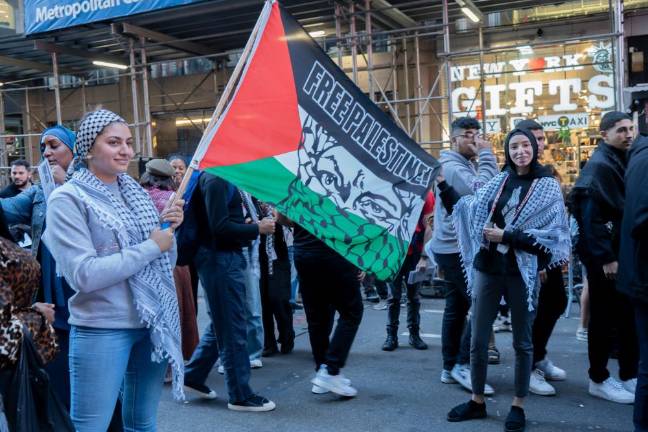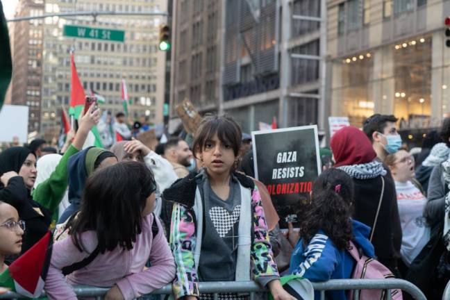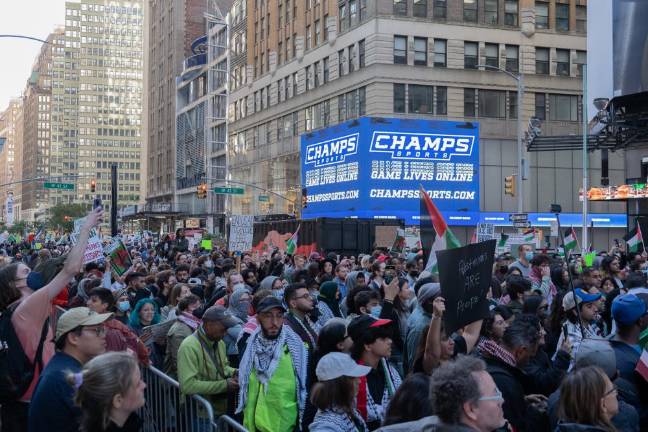 Saeed was one of thousands of demonstrators that gathered in Midtown on October 13, in a largely peaceful protest, demanding the end of what they referred to as Israel’s apartheid policies and illegal settlement of the Palestinian West Bank, American military aid to Israel, and the Israeli blockade and bombardment of the Hamas-controlled Gaza Strip. Chants of “Free Palestine,” supported by the pounding of makeshift drums, reverberated across Times Square and the surrounding area at least two blocks away from Broadway and 42nd Street, which was the epicenter of the protest on this day.