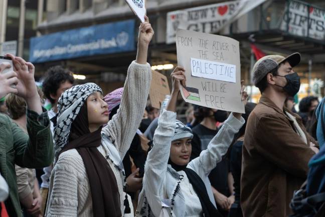 At a pro-Palestinian demonstration in Times Square on October 13, protestors clamored for a free Palestine even as most political leaders in the city voiced support for Israel. The protest focused less on the Oct. 7 attacks by Hamas and more on pent-up frustration over the treatment of Palestinians for the past 75 years and fear over a coming invasion of Gaza.
