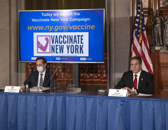 “This is now a footrace between the vaccine and COVID,” Cuomo said Friday, “and as we slow the spread we also have to accelerate vaccine distribution at the same time. The faster we vaccinate people, the quicker new COVID cases go down.”