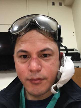 One was with Eugene Palatulan, one of my co-residents who was redeployed to the emergency department. He has two young daughters and his wife is pregnant and had to work from home while taking care of their daughters. And he was quarantined from them because he didn’t want to pass the virus on to them. I think that’s a really good example of a health care worker’s fear for his family and having to sacrifice family time. He was in the ED at the peak of the pandemic, in one of the most affected hospitals in the world with thousands of cases and over 750 ventilated patients at the peak. Dr. Palatulan described hundreds of patients pouring into the ED. Many were in the hallways due to lack of available rooms. With COVID-19, patients’ oxygen saturations could drop precipitously to dangerously low levels and yet the patient could be conversing normally. One of the things we learned is that in the beginning, we were intubating people way too early because we followed typical acute respiratory distress [ARDS] guidelines. We found early intubation wasn’t benefiting COVID patients and proning became a huge strategy.