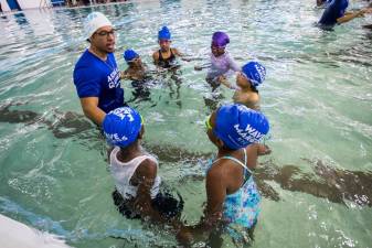 An instructor gives lessons to young swimmers following the ribbon cutting ceremony for the pool reopening at River East Elementary (2351 1st Avenue in Manhattan) on Friday, October 25, 2024. Up to 600 second graders will be eligible for free swimming lessons. ( Photo: Courtesy of Asphalt Green) East Harlem Pool Shut by Earthquake Reopens with a Splash Nine years after an earthquake in New Jersey caused an East Harlem pool to be shut down due to a crack in its foundation,... News 19 Nov 2024 | 04:47