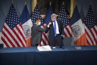 Mayor Bill de Blasio holds a media availability with Commissioner Dave Chokshi, Department of Health and Mental Hygiene, on September 29, 2021. Photo: Ed Reed/Mayoral Photography Office Why Not Vaccine Mandates for All? Vaccine mandates work, the mayor says. So why isn’t vaccination against COVID-19 mandated for more New Yorkers? That question... News 03 Oct 2021 | 02:37