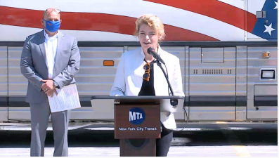 Interim President of NYC Transit Sarah Feinberg speaks at press briefing Tuesday. Photo via YouTube. Fares Returning for Buses At the end of the month, city buses will start to collect fares once again in the midst of a $16 billion budget shortfall,... Home 21 Aug 2020 | 11:16